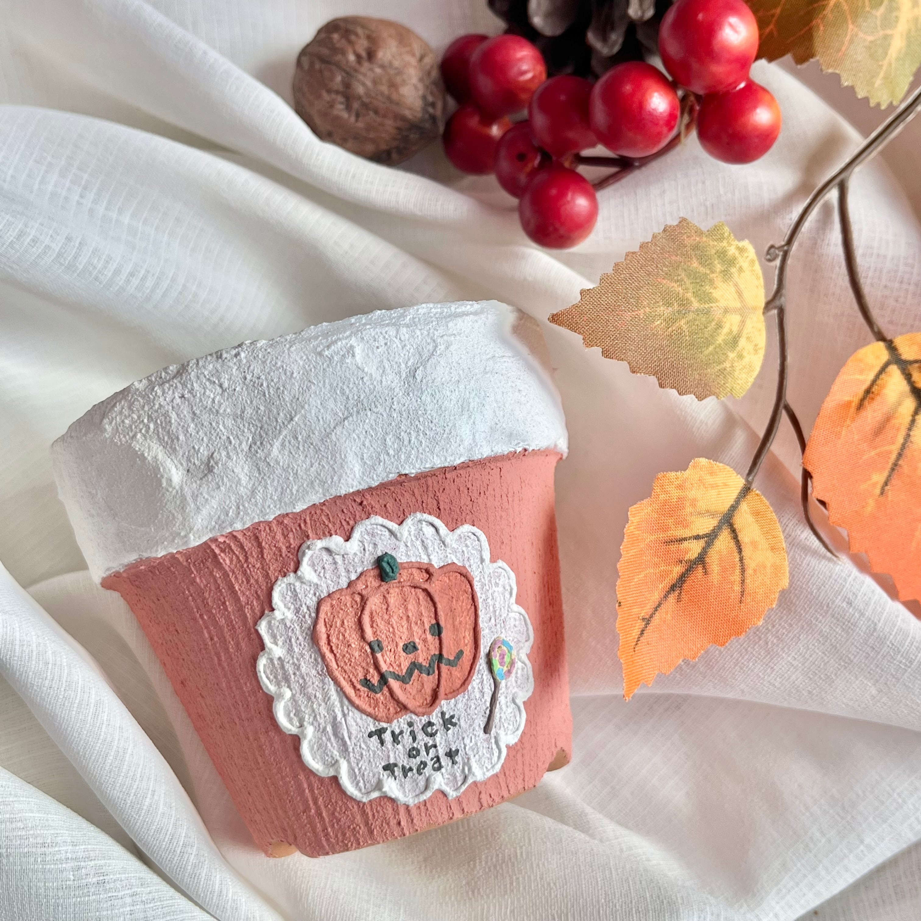 ハロウィンかぼちゃに「Trick or Treat」の文字を添えて、かわいいハロウィンの雰囲気を表現しました。