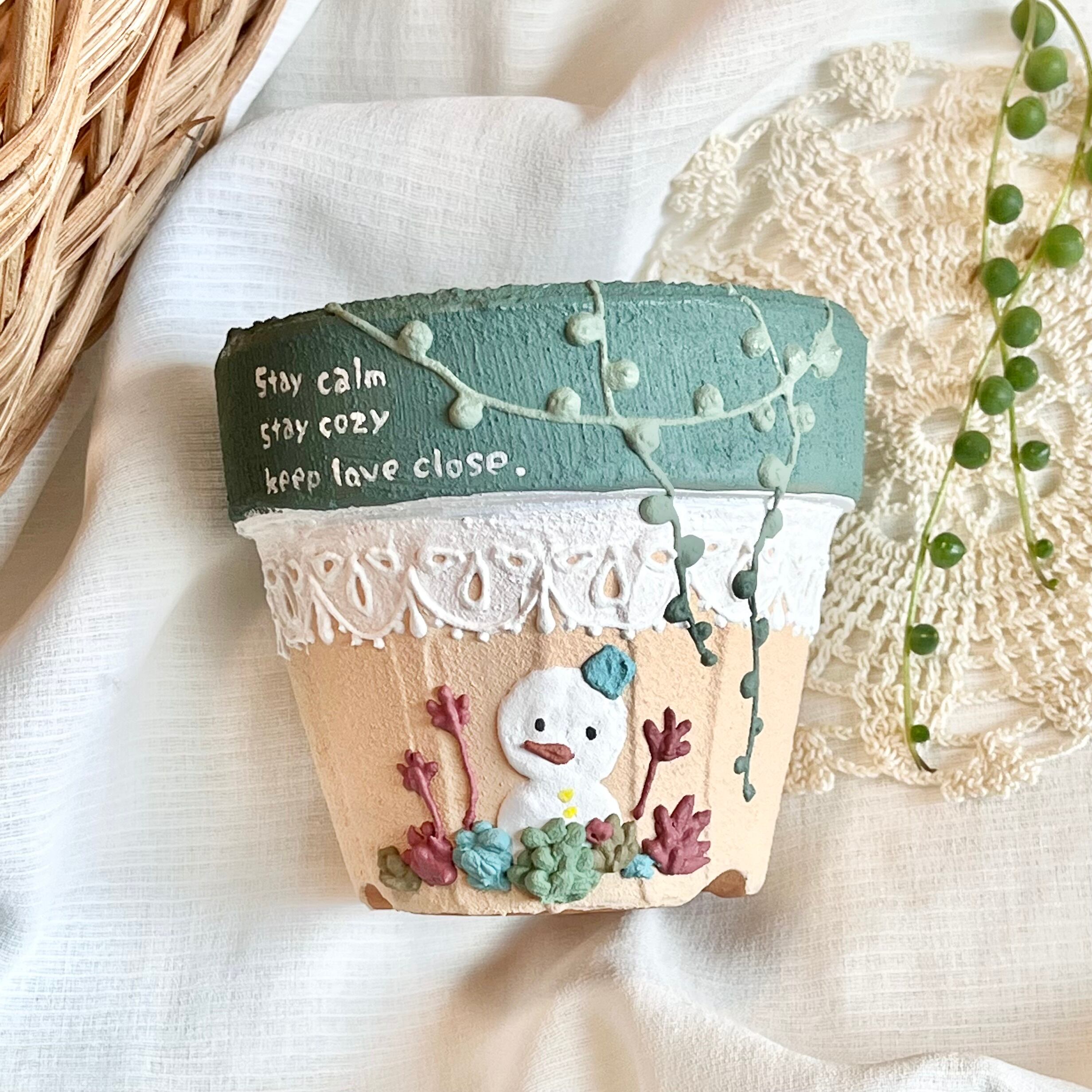 冬の雪だるま鉢【雪だるま】 リメ鉢 多肉植物