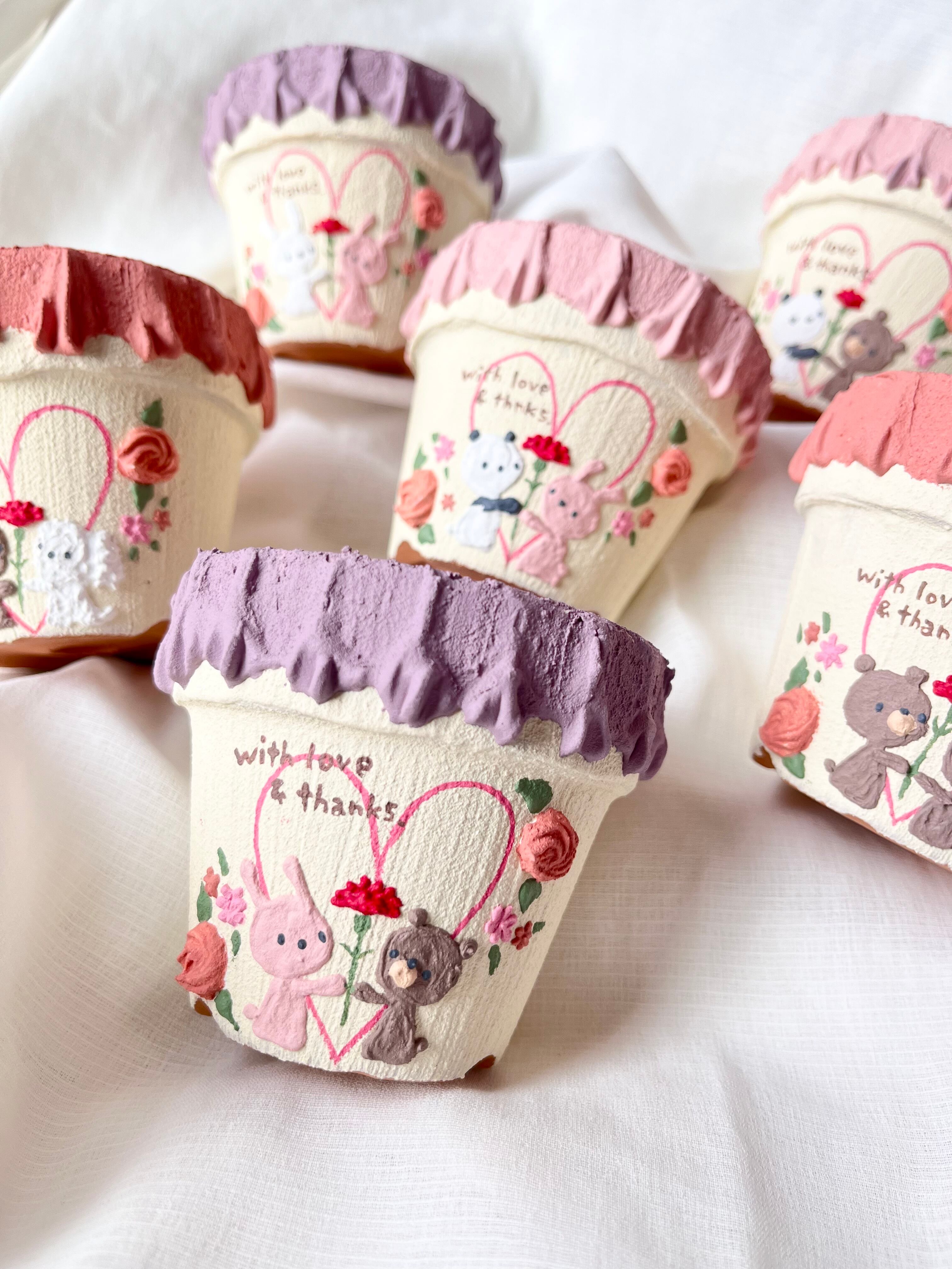 リメ鉢 手描き どうぶつ鉢 ガーデニング雑貨 母の日ギフト 送別ギフト 新生活ギフト 多肉植物 ハンドメイド雑貨 パンダ くま うさぎ ナチュラルインテリア ミモザ