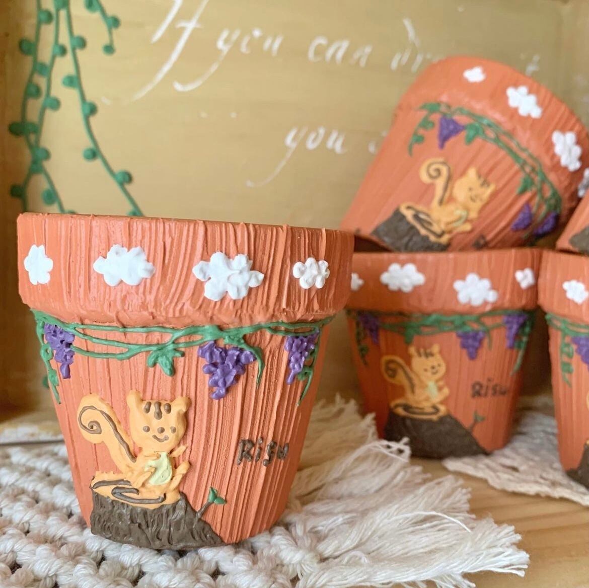 素焼き鉢 植木鉢 リメイク鉢 イラスト鉢