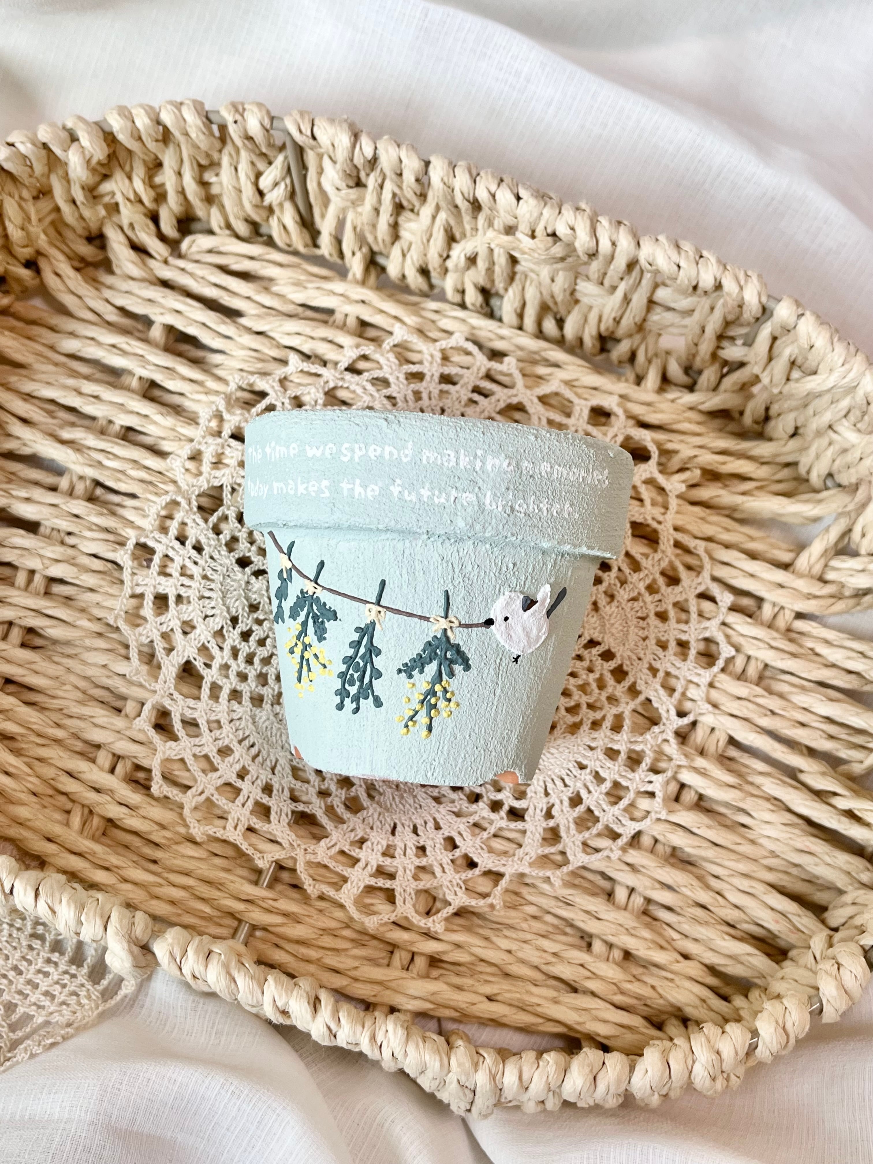 2.5号 ミモザ ガーランド シマエナガ グリーン リメ鉢