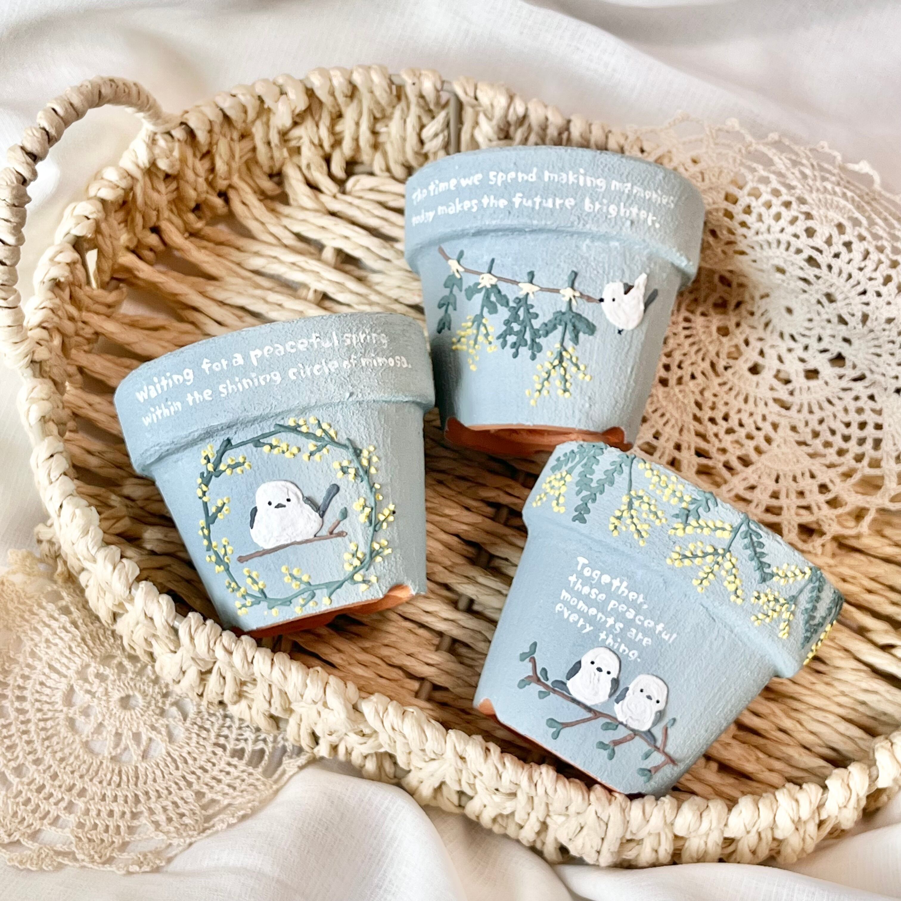 2.5号 ミモザ ガーランド シマエナガ ブルー リメ鉢